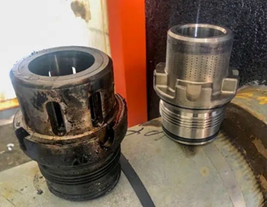 ConocoPhillips יישמה גישה דומה ל שסתומי חנק הזרקת מיםשבו כלוב החנק הפנימי עבור שסתומים רבים שהותקנו הופסק על ידי ה-OEM, ולא הותיר מסלול אמין של חלקי חילוף. במקום להחליף מכלולי שסתומים שלמים, הצוות עבד עם יצרן חוזה להדפסת כלובי החלפה בתלת-ממד ב-Inconel 718 המתאימים לגופי השסתומים הקיימים, תוך שילוב עיצוב מעודכן שנועד לשפר את התנהגות הזרימה והעמידות. אנדרסן ציין את יתרון תחזוקה של AM בהקשר זה: במקום לקנות שסתום חדש לגמרי, "אתה מחליף רק כשצריך [that part]." על ידי הדפסת תוספות הכלוב בלבד, ConocoPhillips הפחיתה את זמן הייצור של החלפים הללו מכ-45 שבועות ל-5 שבועות.
